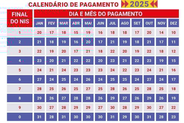 Os depósitos seguem a ordem do último dígito do NIS: